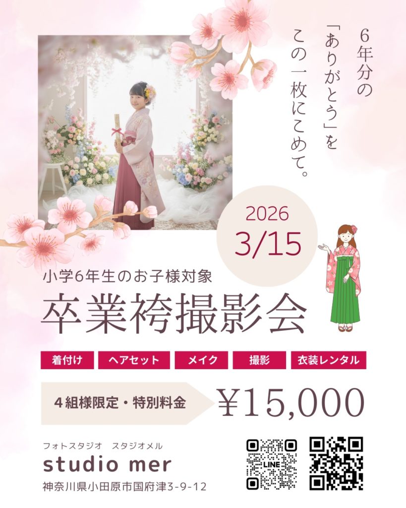 3月15日(日)卒業袴撮影会🌸(ヘアメイク着付け付き❣️)