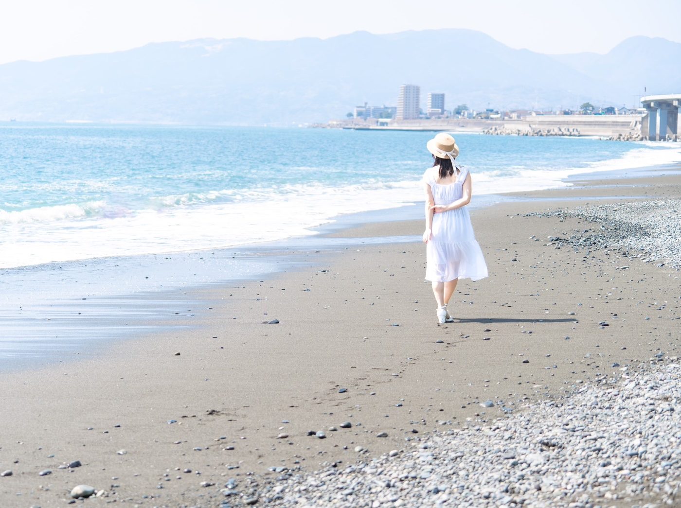 スタジオから30秒で海に行くことが可能です。国府津の海は釣り人以外はほとんと人がいないため、撮影に集中することができます。また、スタジオに忘れ物をしてもすぐに取りに行ける。暑いので一旦休憩に気軽にスタジオに戻れるなどの利点があります。