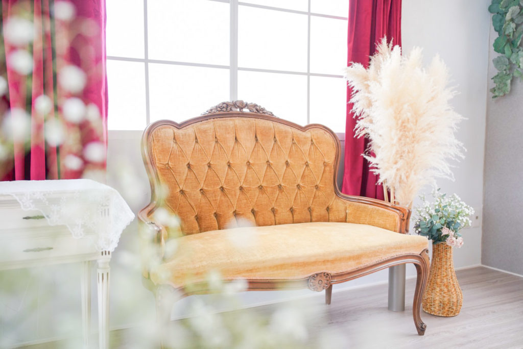 アンティーク家具やアーチ窓などこだわりのクラシカル背景で撮影可能